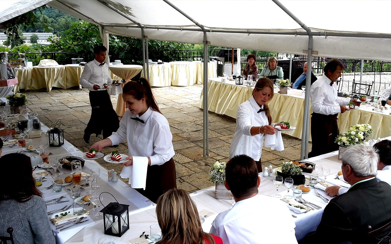 These are the most ceremonious family events. People understand the wedding as a vow given once in a lifetime, therefore much emphasis is put on banqueting the guests. The wedding day’s gastronomy starts in the bride’s place where the wedding guests gather before the ceremony. It continues by a toast after the ceremony and then by a served lunch or dinner for the family and ends by an afterparty for friends. You can use our services throughout the wedding day or just during some parts of it. Formal wear in clear pastel colours for women and a suit with a bright-coloured tie for men are the suitable dresses.